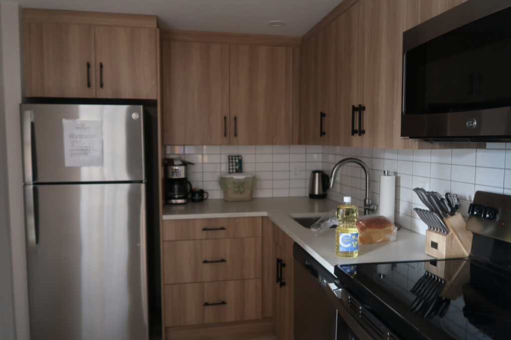 バンフではキッチン完備の「ベースキャンプ スイーツ バンフ」というアパートメントに宿泊しました。メインストリートや公園などの観光スポットにも近くスーパーも隣接しており、立地は抜群でした。アパートメントの場合、地元のレストランで食事以外にも、スーパーで食材を買って自炊できるなど選択肢が増えるので良かったです。