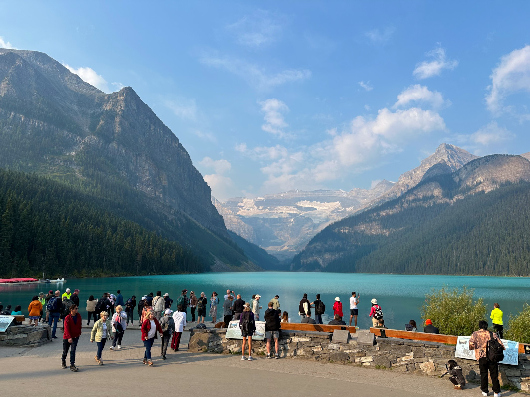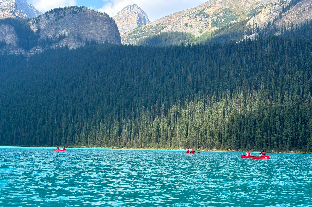 レイク・ルイーズはバンフ市街から車で1時間30分程度の位置にある、カナディアンロッキーを代表する人気観光地です。エメラルドグリーンの氷河湖とビクトリア氷河の絶景が人々を魅了します。