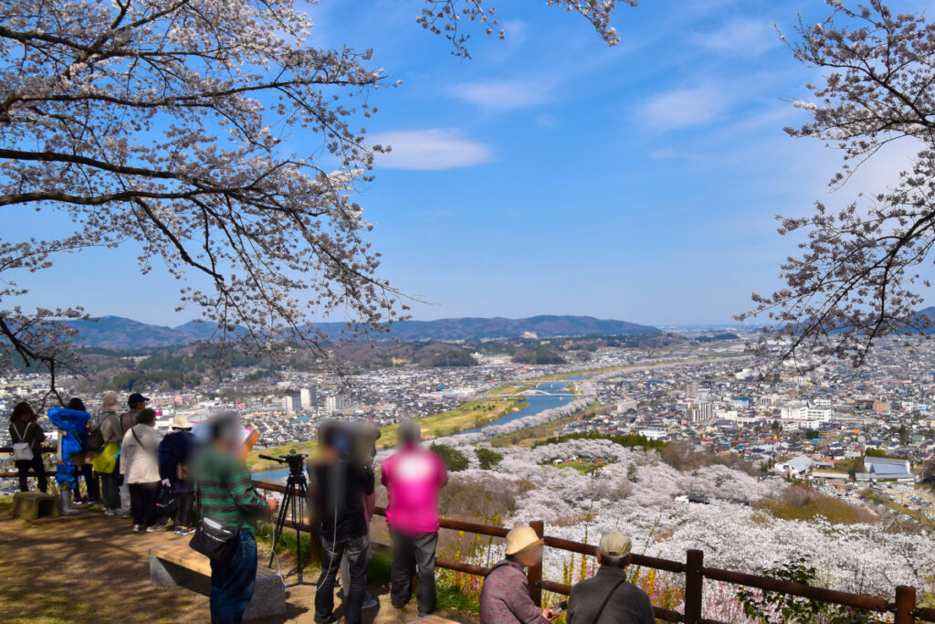 山頂からは桜満開の街並みの景観が楽しめ、冒頭の電車の写真もここから撮影しました。